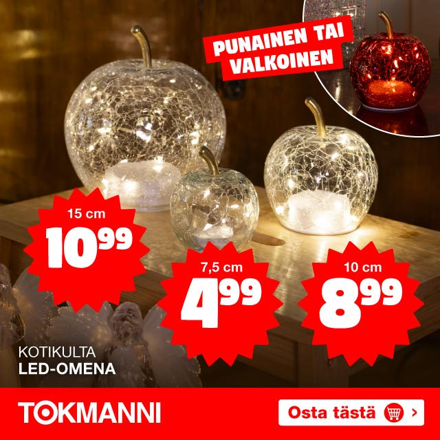 * Osa tuotteistamme toimitetaan suoraan tavarantoimittajamme varastosta. Tällaisia tuotteita ei voi noutaa Tokmannin myymälöistä, vaan ne toimitetaan tuotteesta riippuen kotiinkuljetuksella ja/tai noudettavaksi Postin noutopisteestä tai pakettiautomaatista. Saat lisätietoa tuotteiden toimitusvaihtoehdoista tilauksen yhteydessä.