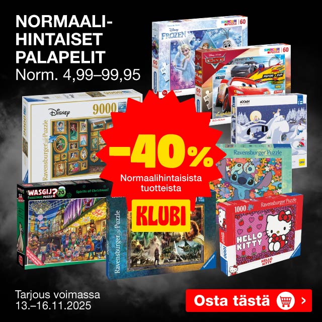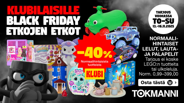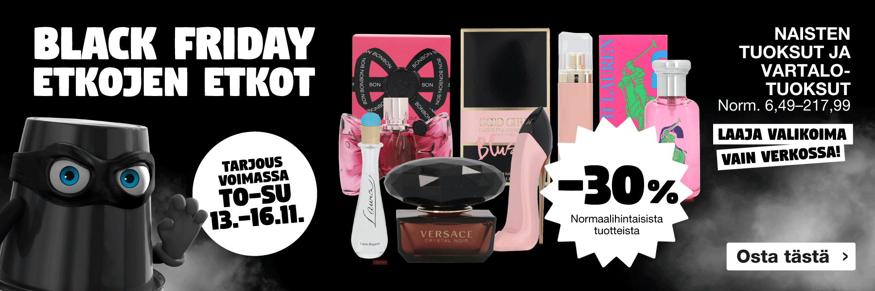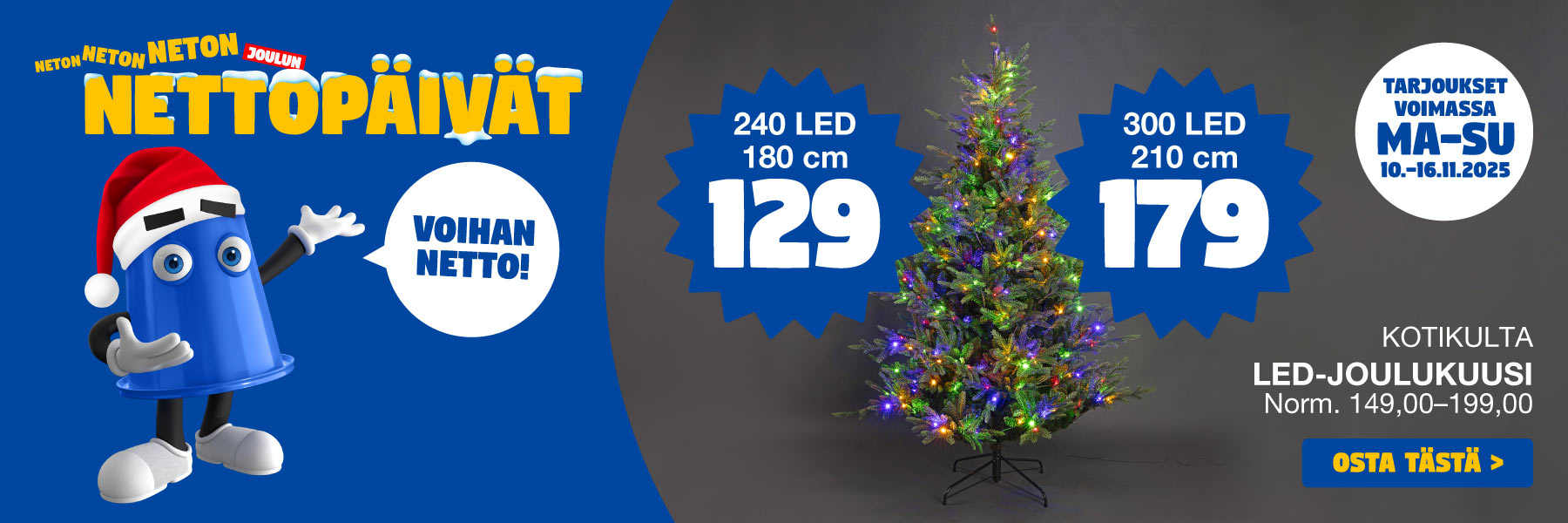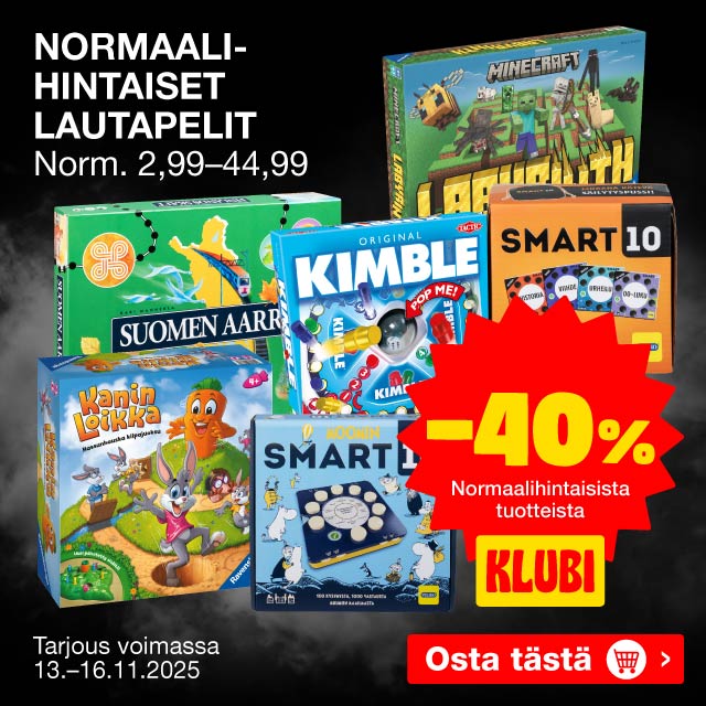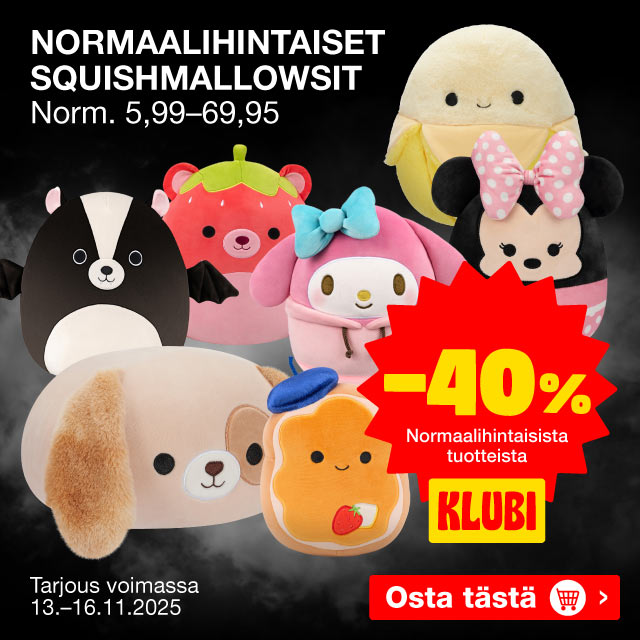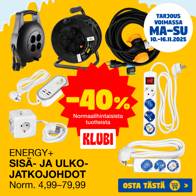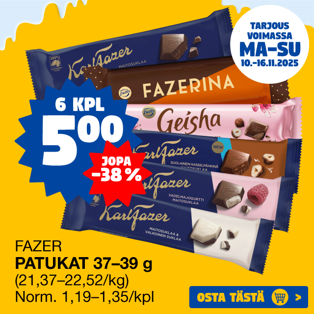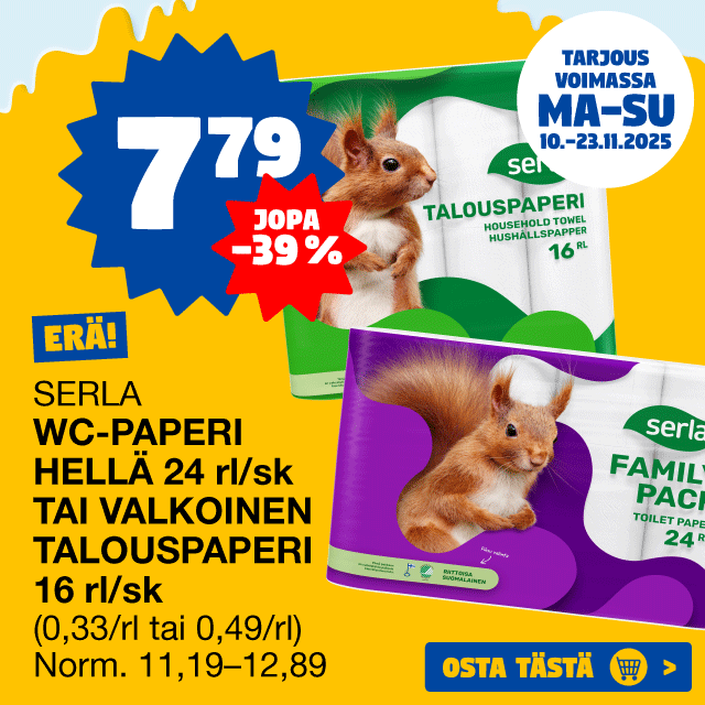 Tarjoukset ovat voimassa maanantaista sunnuntaihin 10.â16.11.2025, ellei tuotteen yhteydessĂ€ toisin mainita tai niin kauan kuin tuotteita riittÀÀ tarjousaikana. Kampanjatuotteista ei voi tehdĂ€ myymĂ€lĂ€varauksia. Osassa myymĂ€löistĂ€ rajoitettu valikoima. Ei jĂ€lleenmyyjille. MyymĂ€lĂ€n hinta saattaa poiketa verkkokaupan hinnasta. Voit tarkistaa tuotteiden myymĂ€lĂ€kohtaisen saatavuuden ja tuotekohtaisen toimitusajan tuotekorteilta.