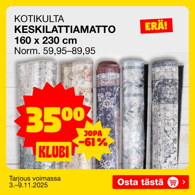 ⏳ MA 3.11. klo 21.00 — TI 4.11. klo 6.59 Etu koskee normaalihintaisia tuotteita.